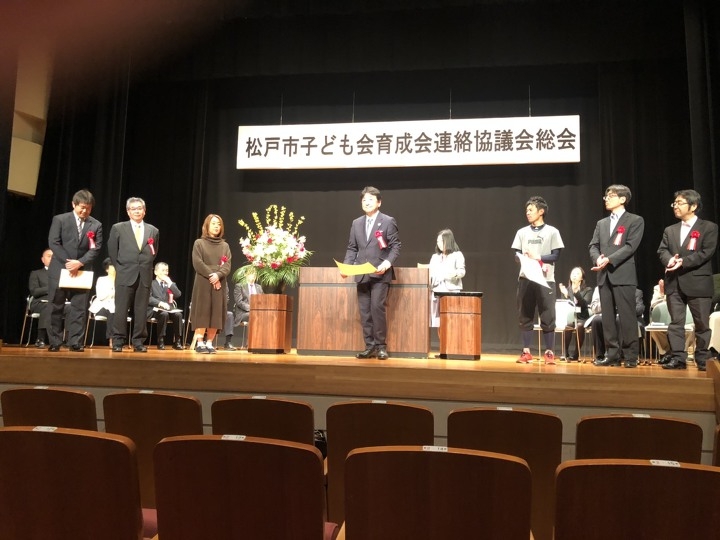私事ではありますが、去る4月6日に松戸市民劇場において「松戸市子ども育成会連絡協議会総会」が開催され、松戸市長、松戸市議会議長、松戸市教育長も来賓として参列される中で、松戸市子ども育成会連絡協議会より、永年にわたり子供会の健全育成発展のため尽力をしたとして表彰状を頂きました。